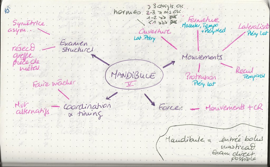Il y a l’examen clinique, tel que résumé dans cette carte heuristique de ma main !